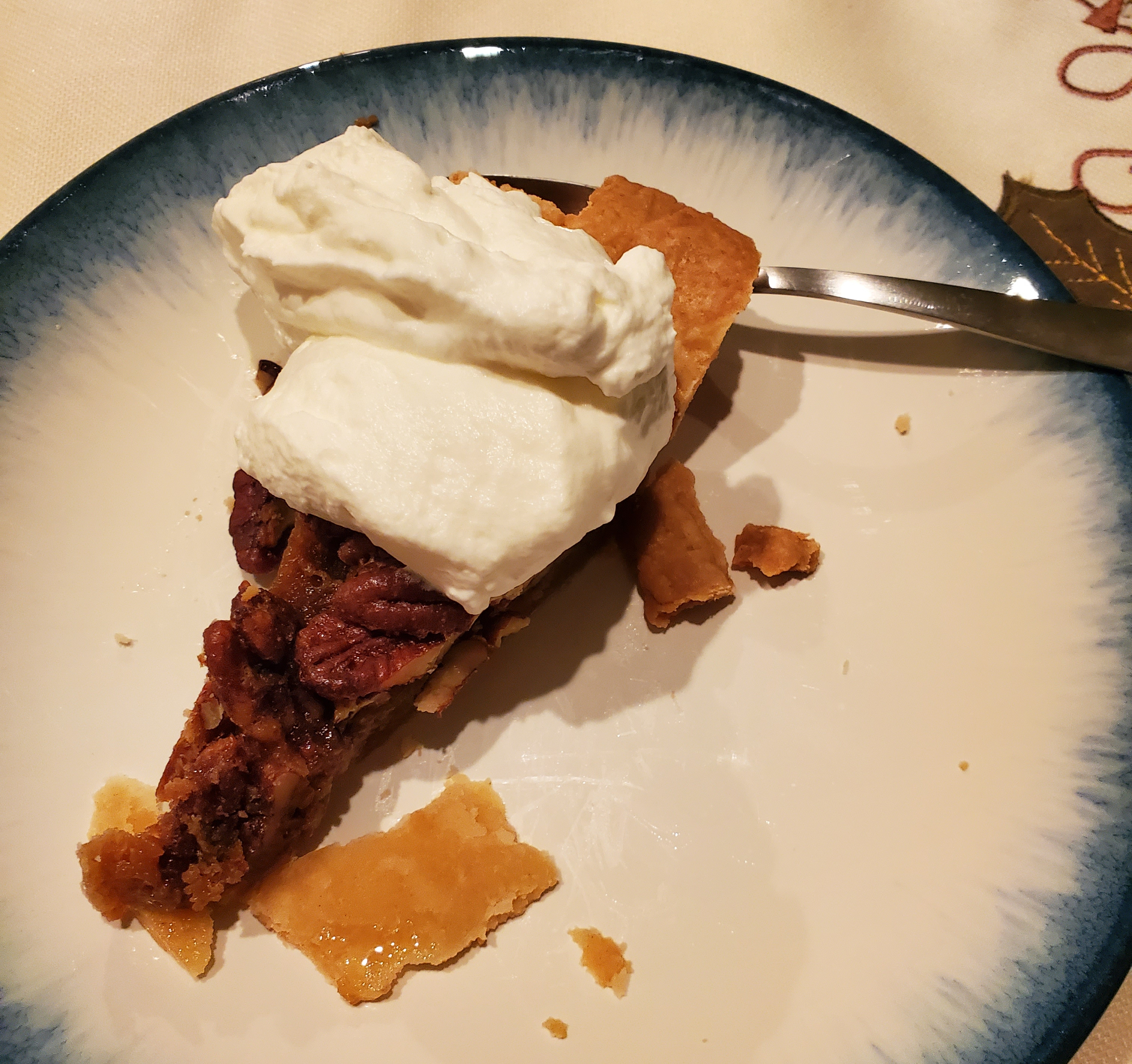 This year I baked a maple pecan pie for a Thanksgiving dinner with friends. I also made stuffing just like my grandma makes and mashed potatoes! My friend cooked a honey ham, sweet potato casserole and green bean casserole. The whole table spread was beautiful and brought joy to my heart. It was a very proud moment for all of us to make something so beautiful in these difficult times. The night was really fun. The food was deliscious food and I was in good company. After dinner we even played a game together with lots of shouting and laughing. I’ve shared the pie recipe in the picture as it is now a favorite recipe! My friend and I loved the pie.