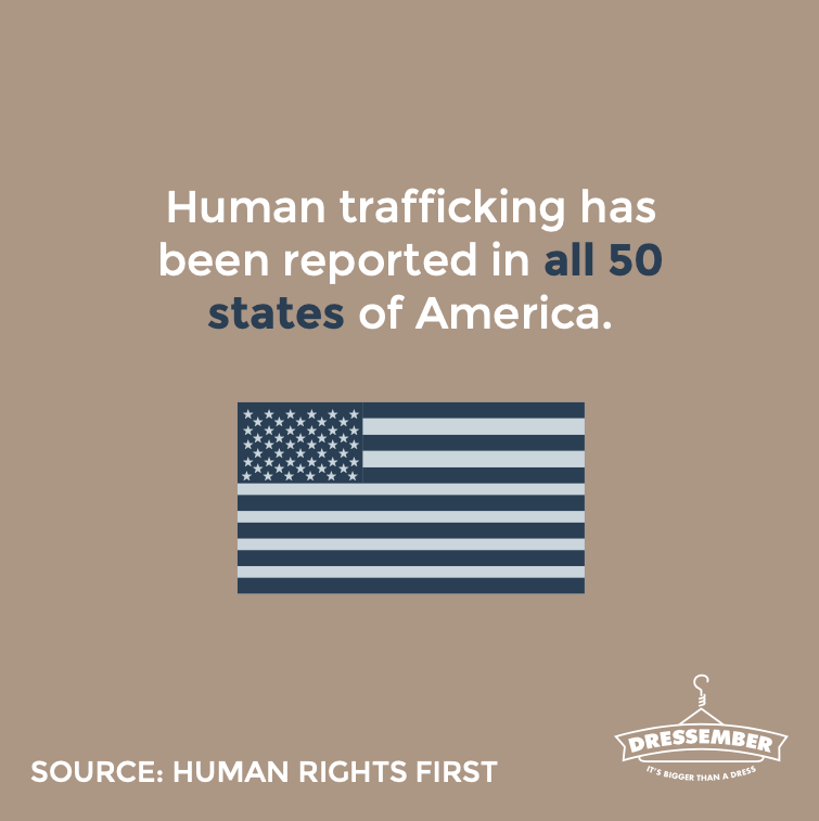 A continual myth about human trafficking is that it happens “over there.” Unfortunately, the United States is not exempt from the list of 127 countries where human trafficking has been reported and none of the 50 states have a clean record, either. That means, if you live in the United States, you need to be aware of what goes on in your own communities and neighborhoods. The Dressember Network works to fight trafficking locally and internationally. The battle to end human trafficking is personal and closer to home than we typically feel comfortable acknowledging. Join the fight by following @dressember and donating.
